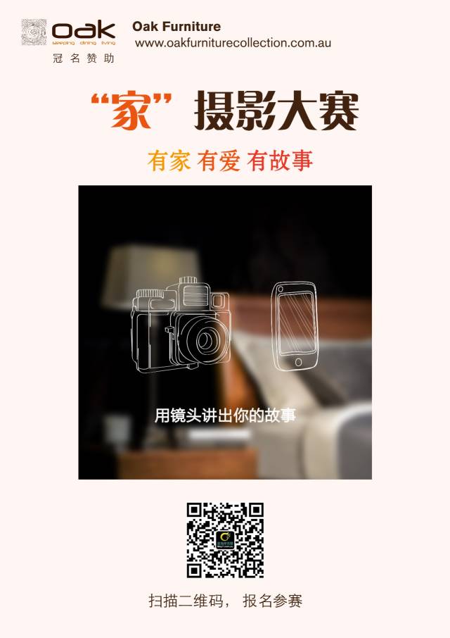 关于Oak Furniture冠名赞助的“家”摄影大赛可登陆金海岸传媒maytmedia公众微信号查询或者网站mayt.com.au