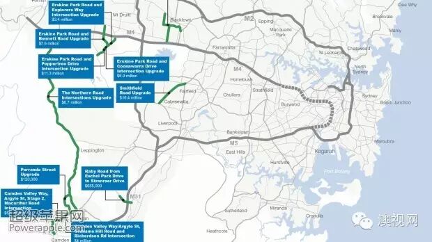 政府宣布的九个地方道路改造项目中,有四个位于划分Erskine Park和St Clair两个城区的Erskine Park Rd路上;还有两个项目将位于Camden Valley Way的交叉路口。